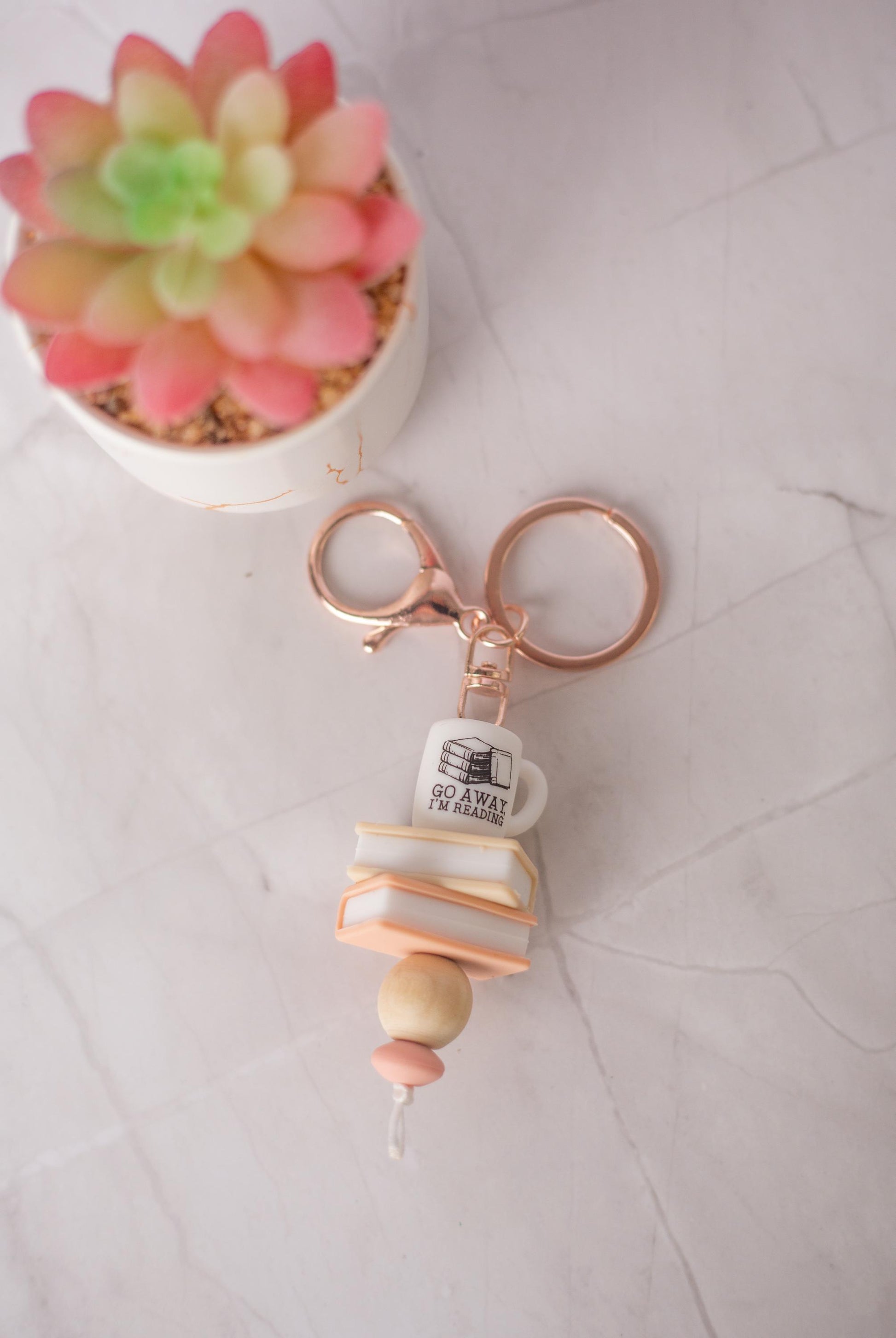 These cute boho book keychains are made with silicone beads and wood beads!
