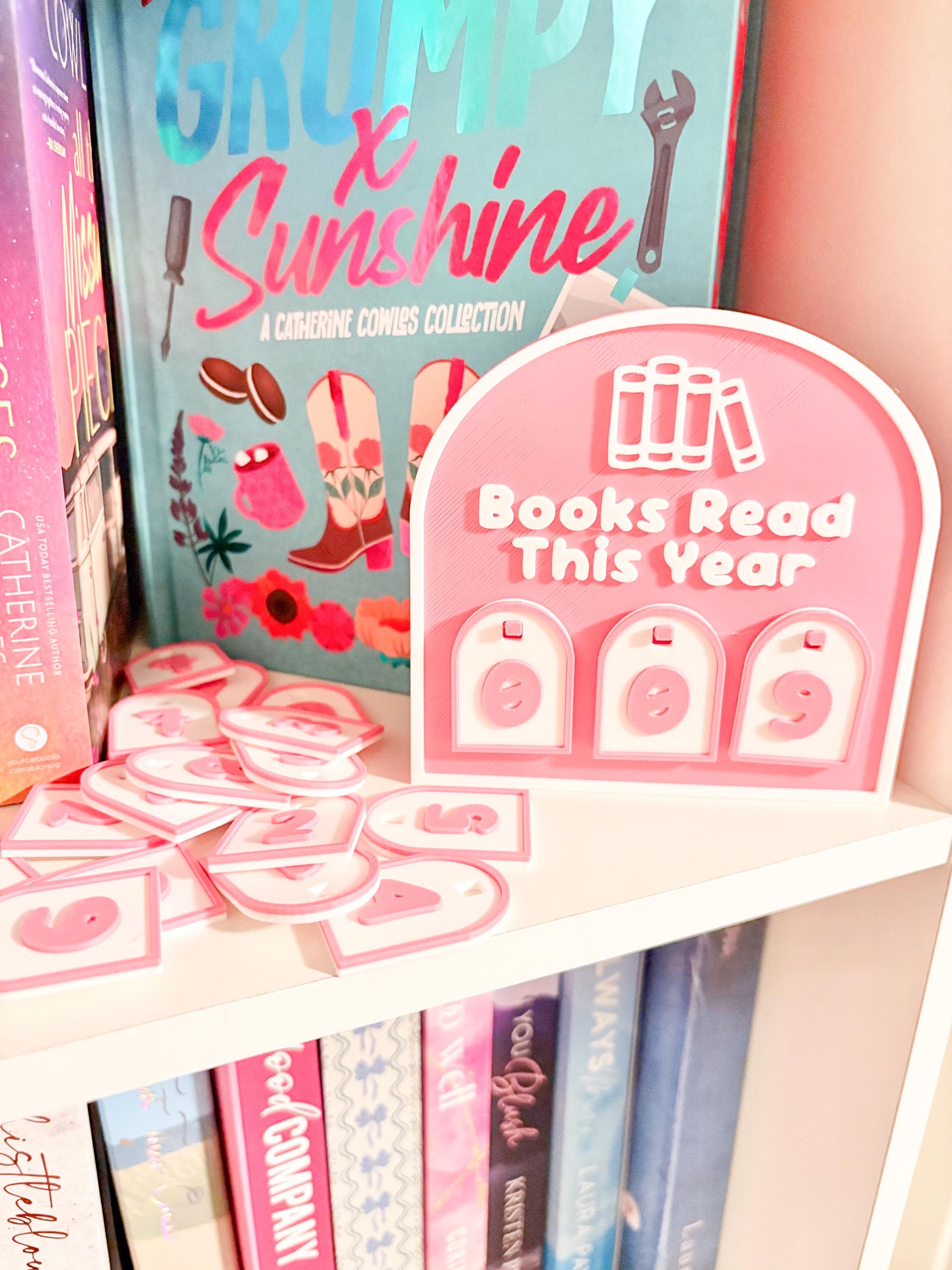 This Books I Read counter is a 3D printed bookish display designed to sit perfectly on your shelf, desk, or reading nook. It includes two full sets of numbers (0–9), allowing you to count up to 110 books right out of the box.